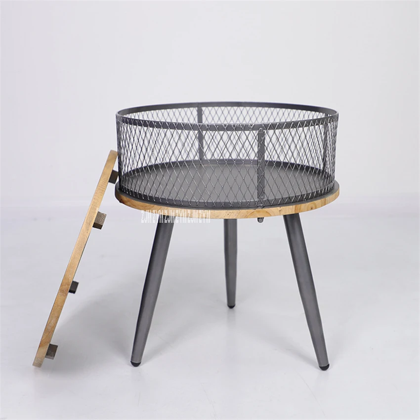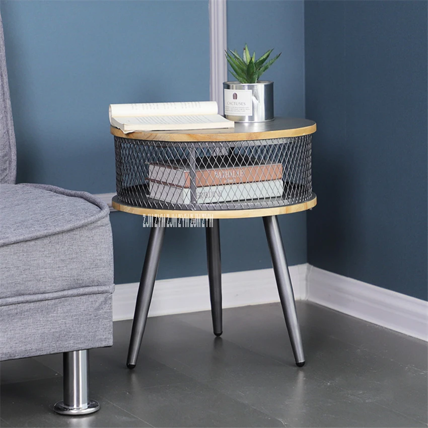 HOT Sale 18XS199 Home Solid Wood Iron Leg Eco-Friendly Paint Small Round Storage Table Modern Simple Living
