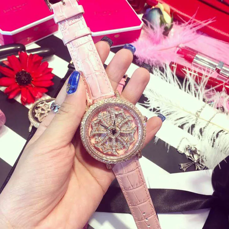 Mashali Brand Fashion luxury Women Quartz Watches Lady Shining Rotation Dress watch Big Diamond Sto