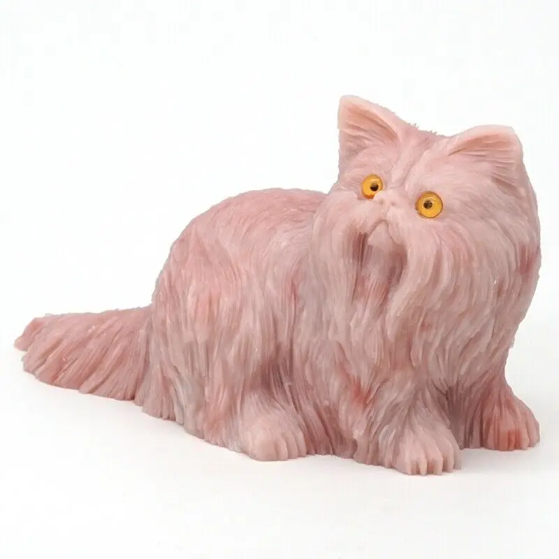 HIGH QUALITY 5.7" Persian Cat Statue Natural Gemstone Pink Opalite Crystal Carved Craft Figurine Home Decor